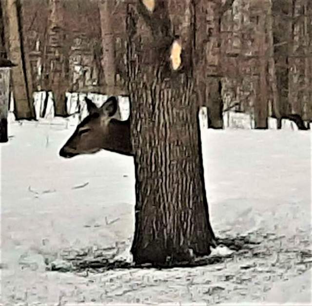 Як олень заховався за деревом / Фото з фейсбуку Дженні Макміллан