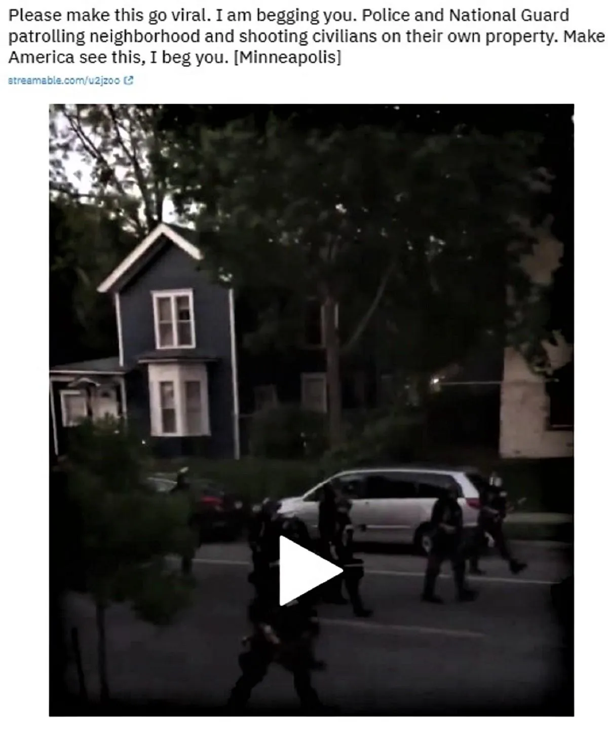 Третье место заняла публикация не слишком приятного содержания. На видео полиция и Национальная гвардия патрулируют окрестности и стреляют в гражданских людей в Миннеаполисе.
