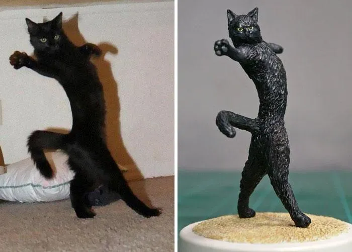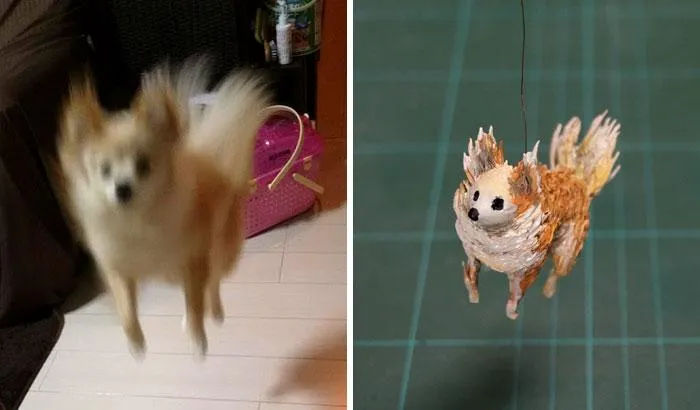 Meetissai выбирает тех животных, которые попали в объектив в странных или неуклюжих позах. В основном он изображает кошек, но есть также фигурки собак, хомяков, ежиков и тому подобное. Своими детализированными работами художник делится в твиттере.