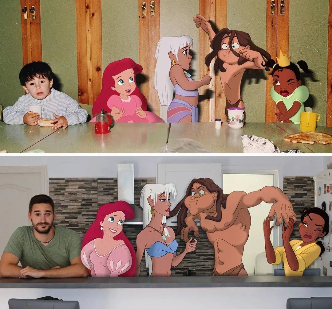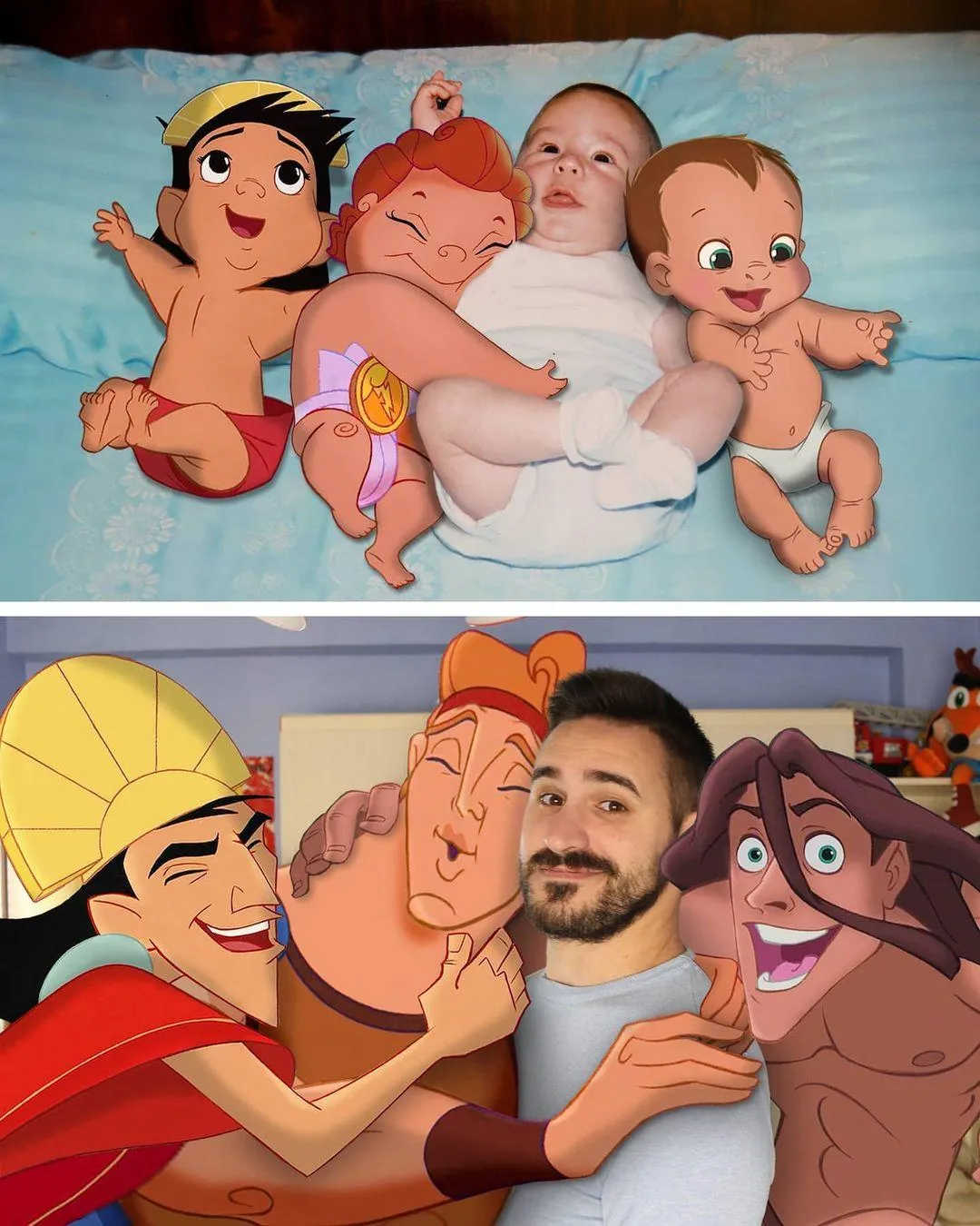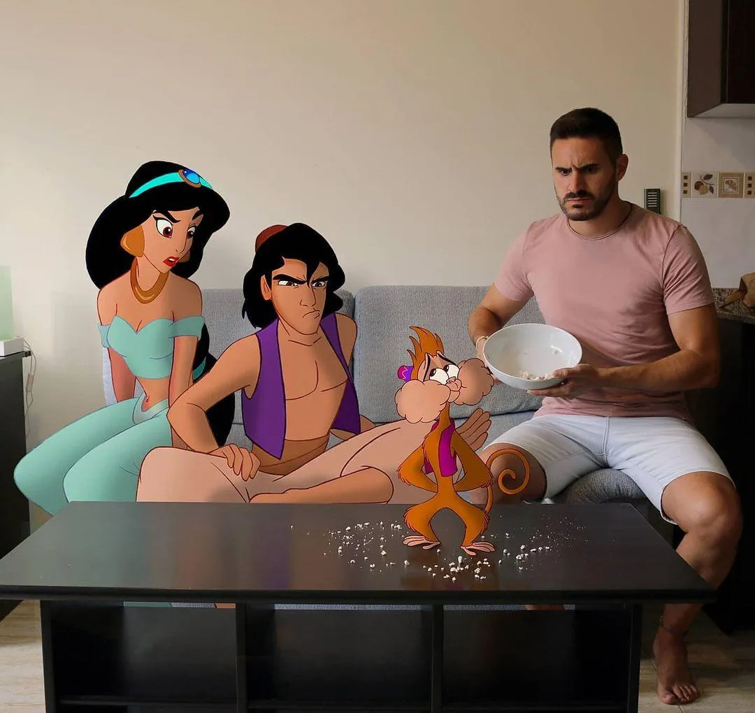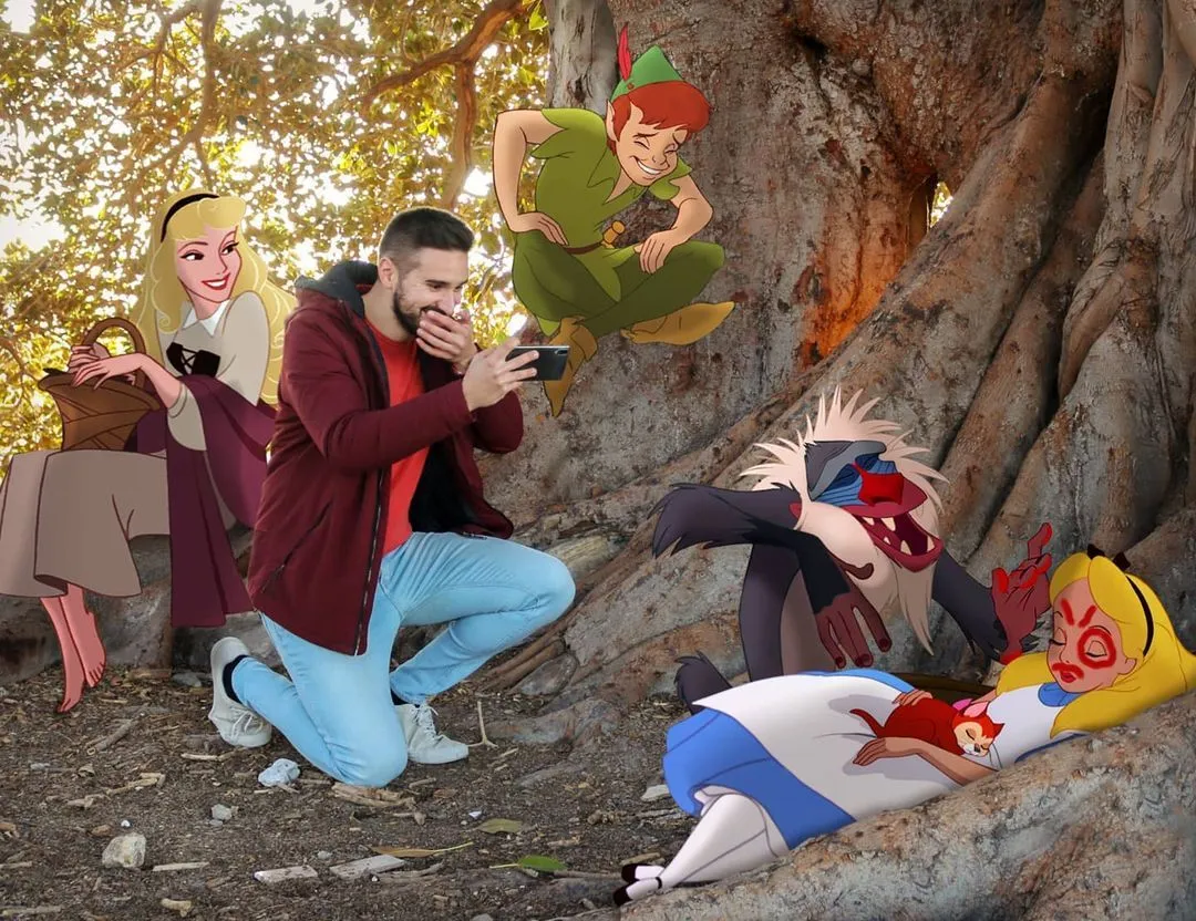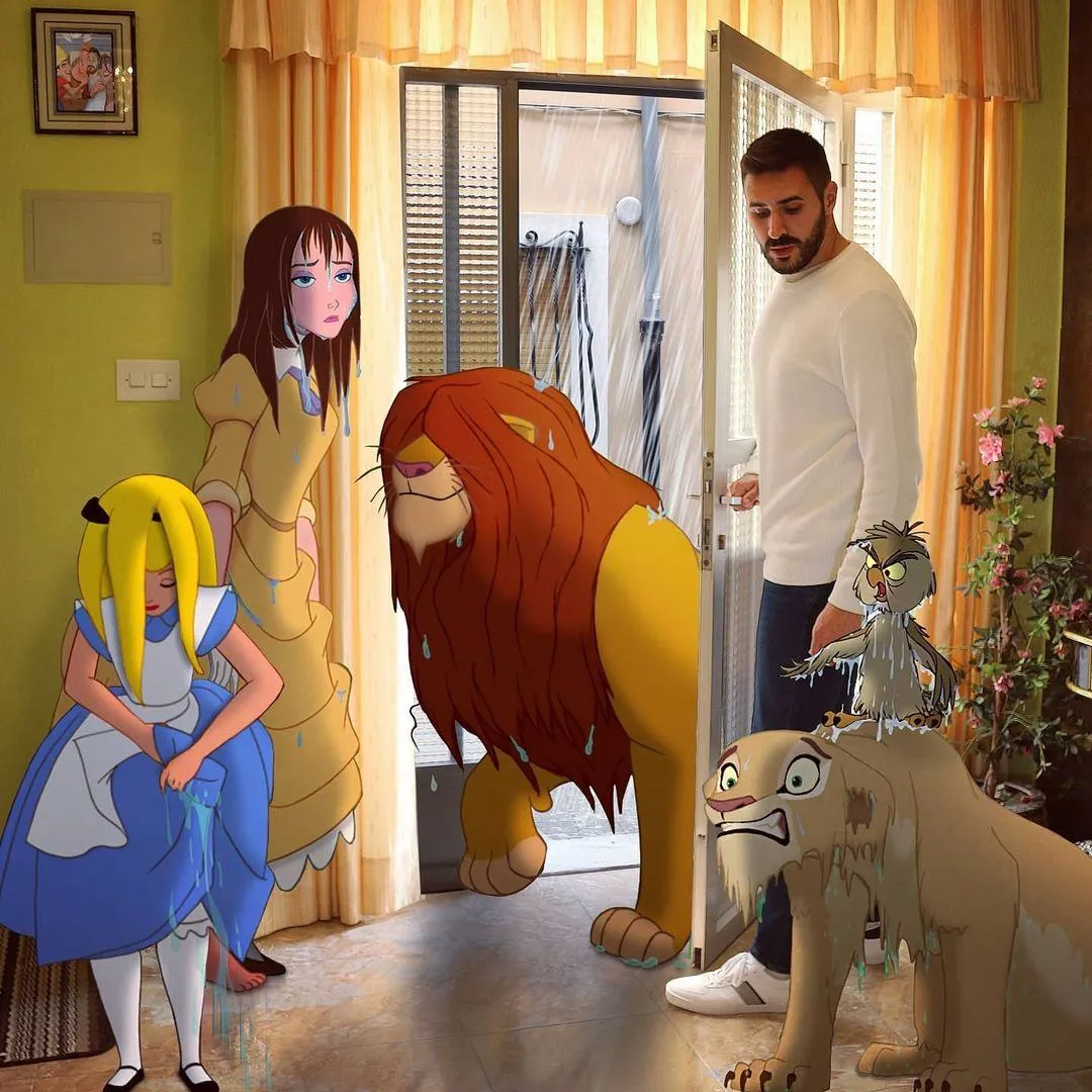 Художник и учитель начальных классов Самуэль МБ тоже этого хотел. А когда вырос, решил хотя бы на какую-то часть воплотить свою мечту в реальность. С помощью фотошопа он начал создавать забавные коллажи с персонажами мультфильмов Disney, так как будто бы он вместе с ними попадает в различные жизненные ситуации.