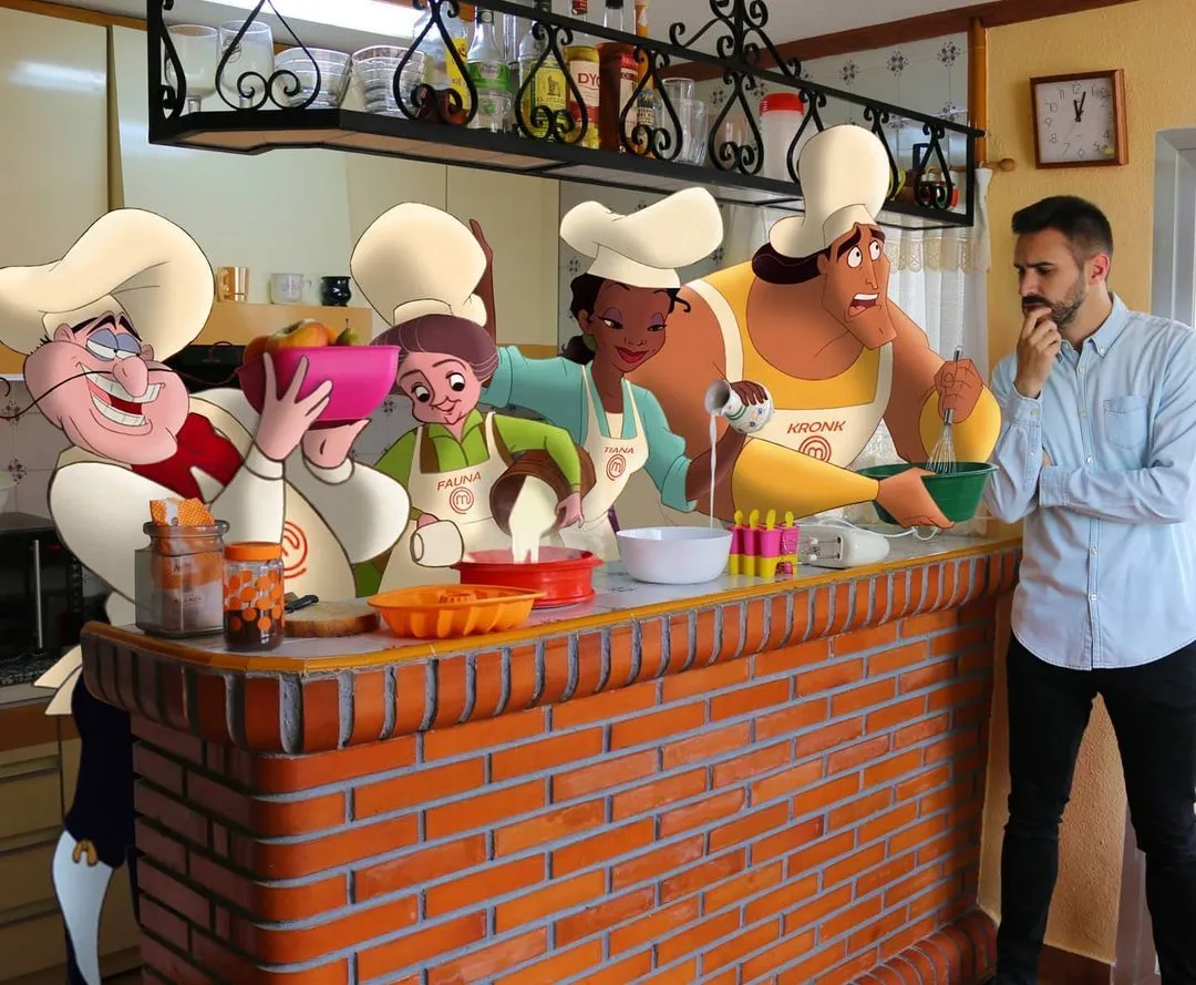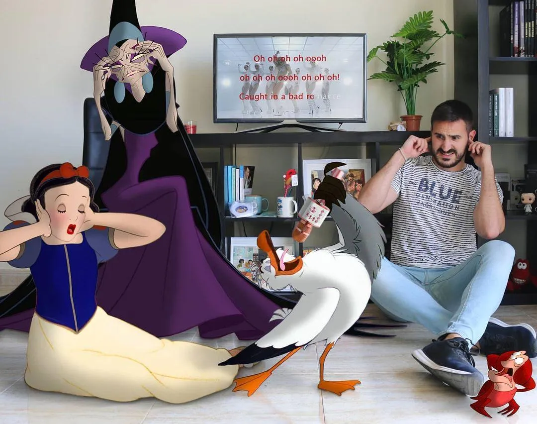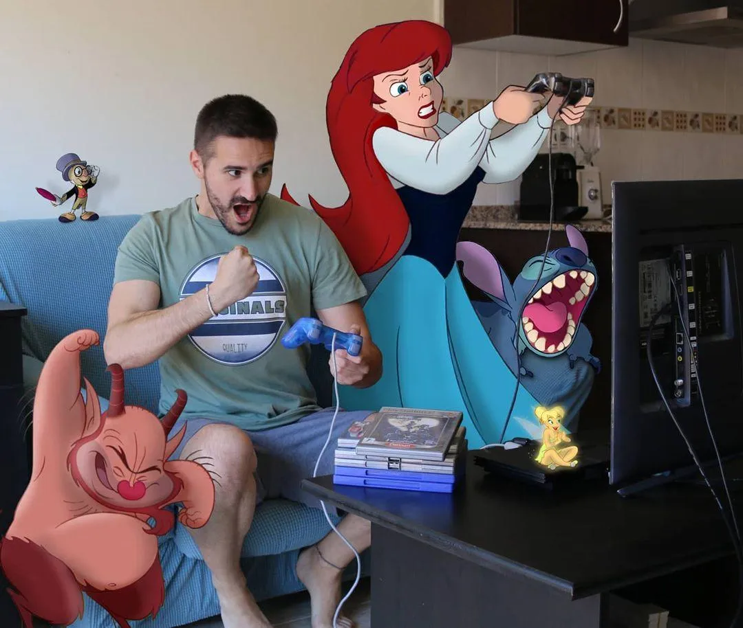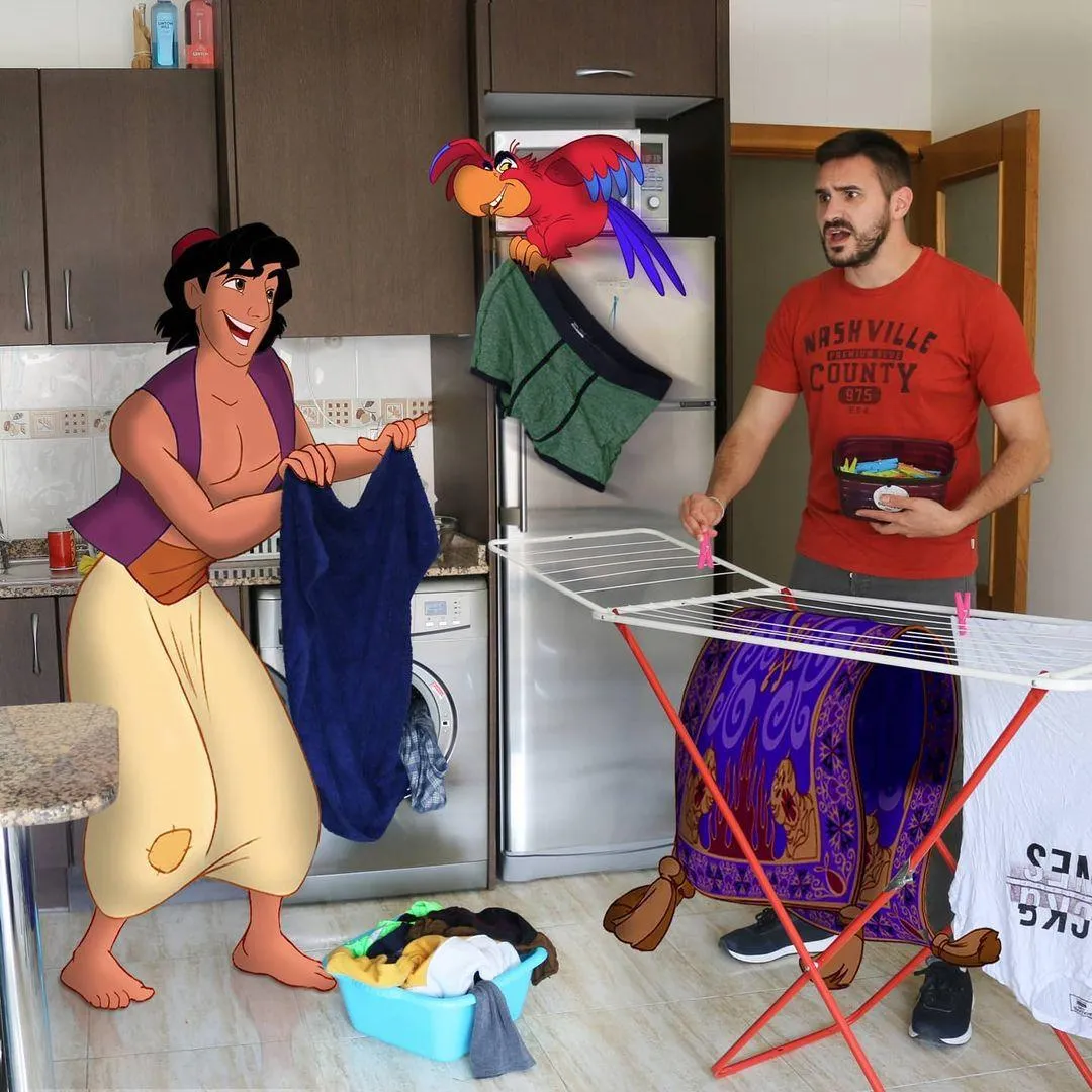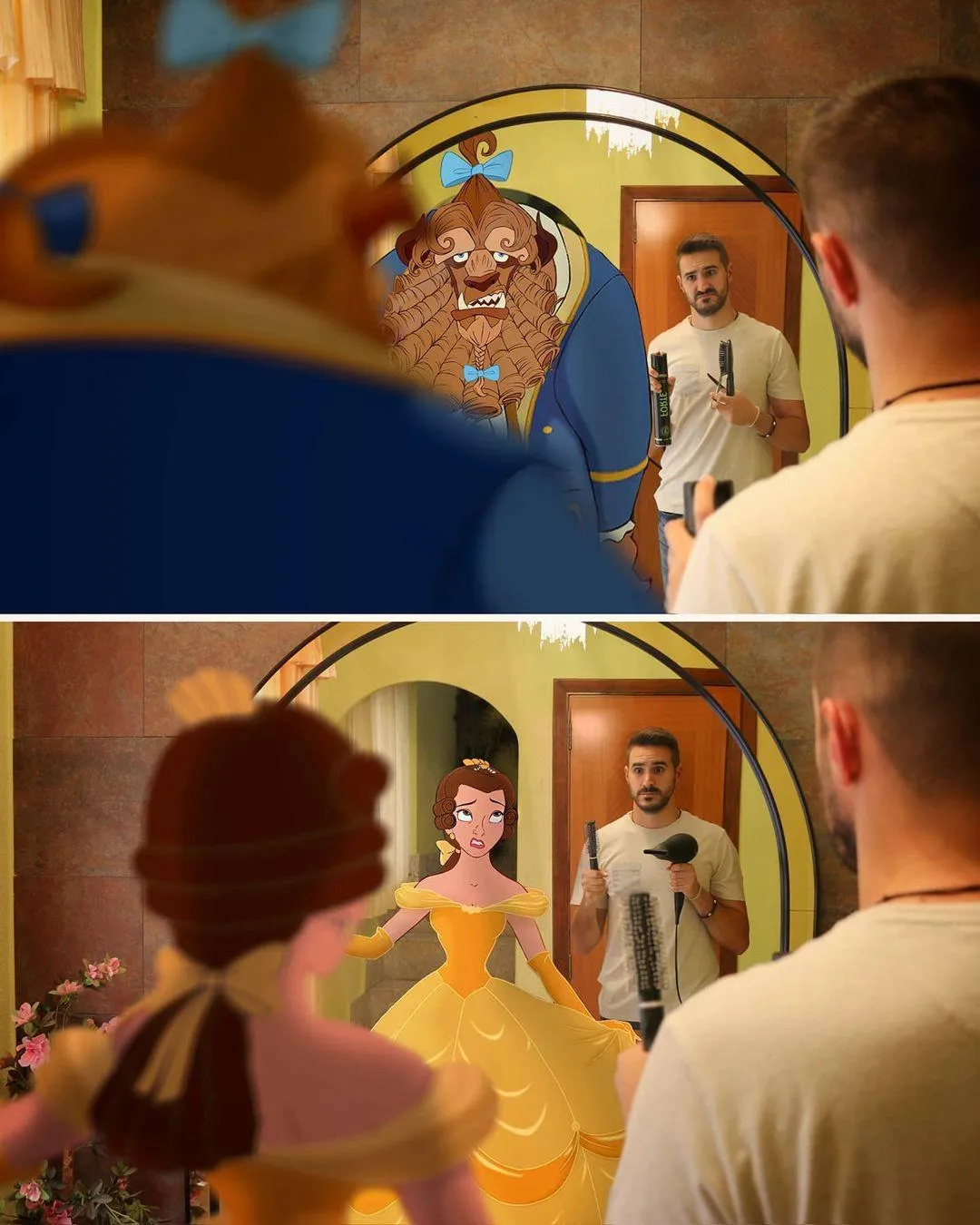 Художник и учитель начальных классов Самуэль МБ тоже этого хотел. А когда вырос, решил хотя бы на какую-то часть воплотить свою мечту в реальность. С помощью фотошопа он начал создавать забавные коллажи с персонажами мультфильмов Disney, так как будто бы он вместе с ними попадает в различные жизненные ситуации.