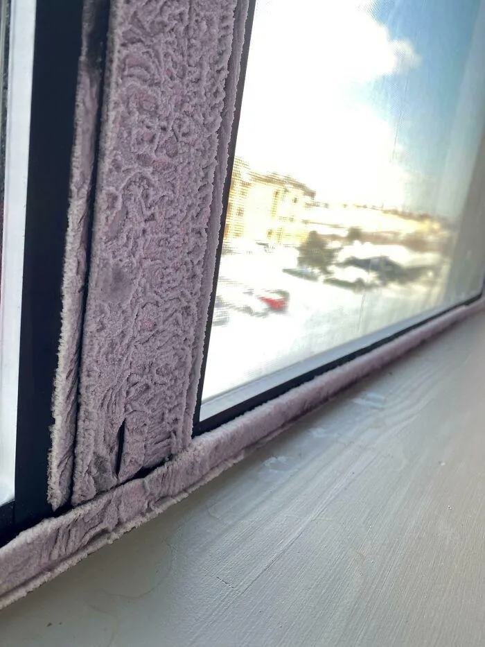 "Снаружи так холодно, что оконные рамы внутри покрылись инеем"