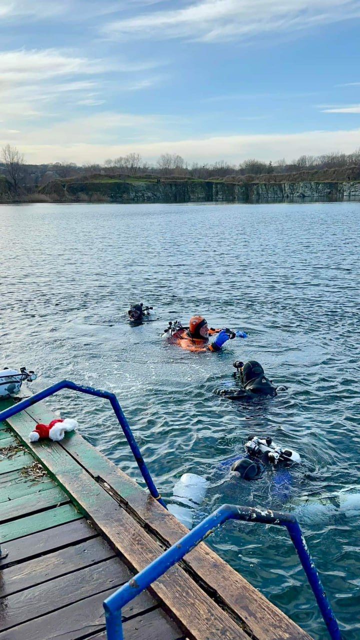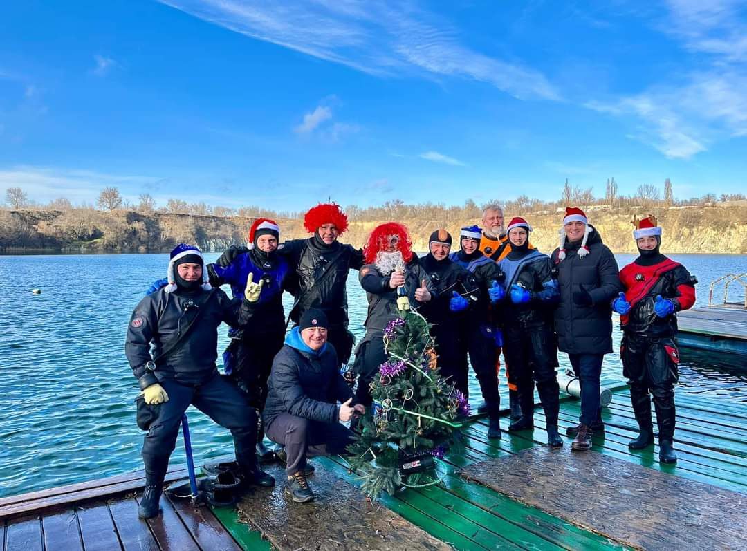 Елку на дно карьера разместили дайверы. Эта традиция существует в течение последних нескольких лет.