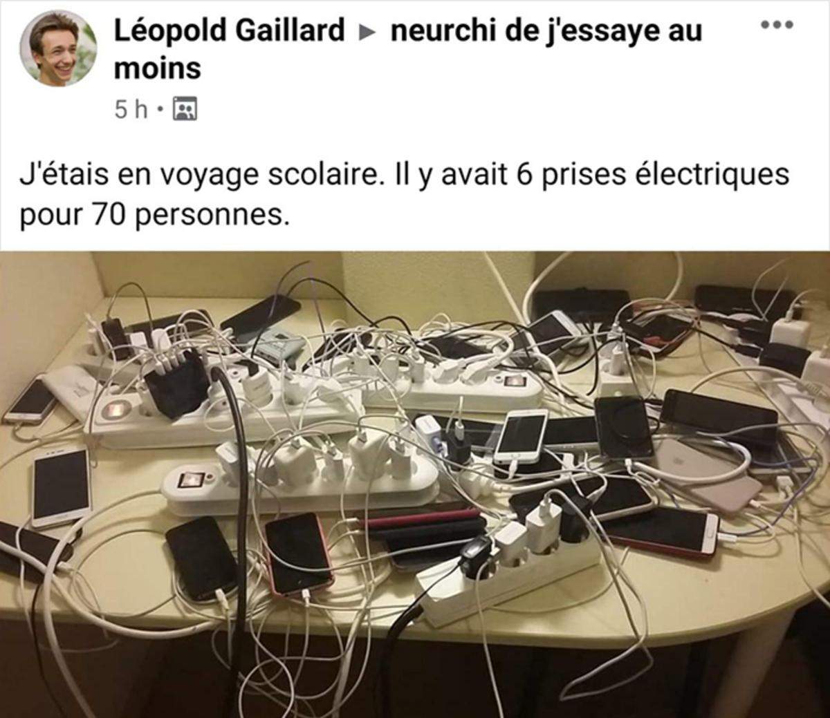 "Мы были в школьной поездке. На фото 6 электрических переносок для 70 людей"