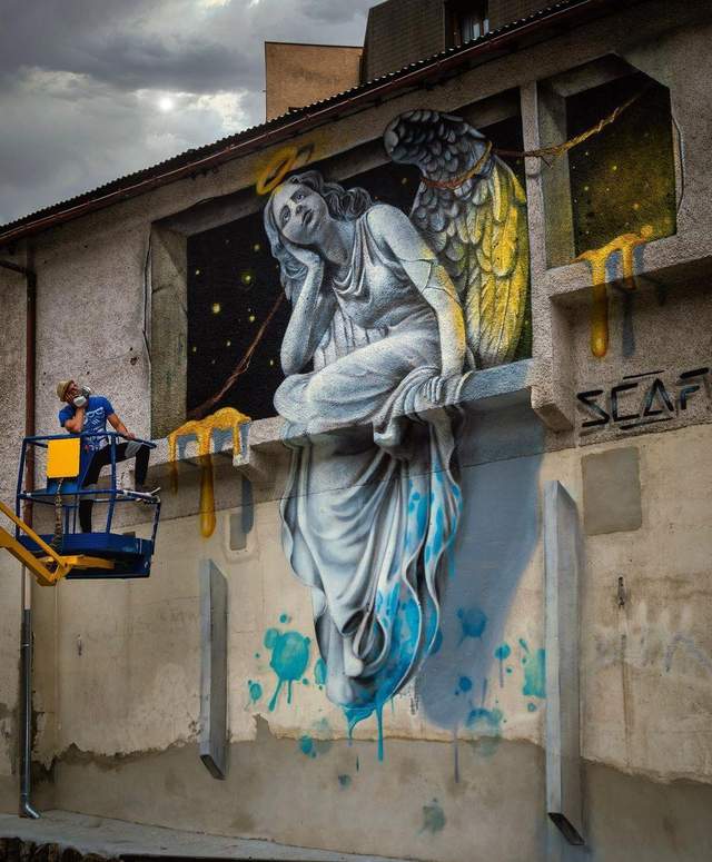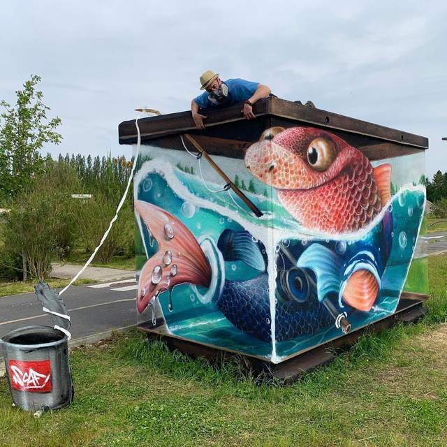 Исправить какую-то часть подобных мест взялся уличный художник из Франции, работающий под псевдонимом Scaf. Чтобы сделать эти локации интереснее и веселее, он создает масштабные трехмерные граффити, которые поражают своей реалистичностью. Результаты своей работы он публикует в соцсетях – показывая сравнения до и после, и обыгрывая свои невероятные рисунки.
