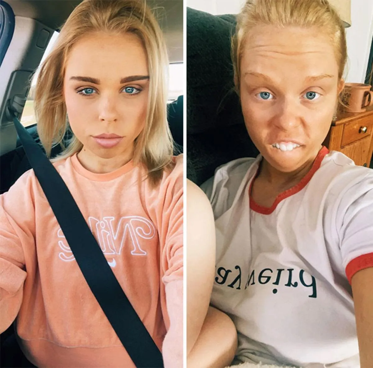 Женщины в сети решили несколько изменить эту тенденцию, и показали, как они могут выглядеть, если не стараются произвести впечатление на кого-то по ту сторону экрана. Коллажи, которые они сделали – очень смешные, а "плохие" фотографии сделали героинь еще более особенными и показали их внутреннюю красоту. Ведь умение посмеяться над собой – одна из самых прекрасных черт характера.