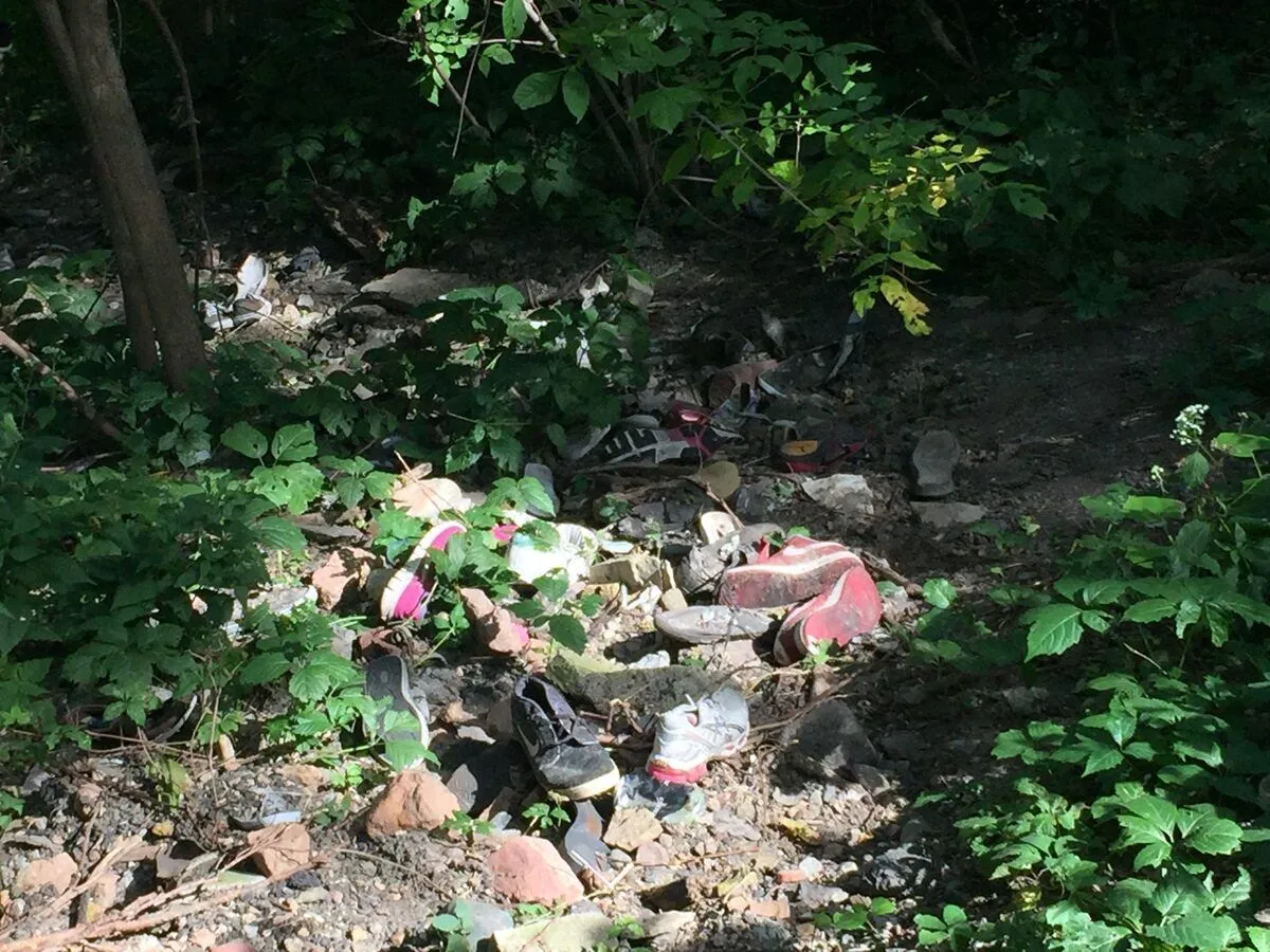 Ще сотні пар лежать під мостом. Змішані з листям та землею, вони очевидно стали невдалими спробами своїх колишніх власників.