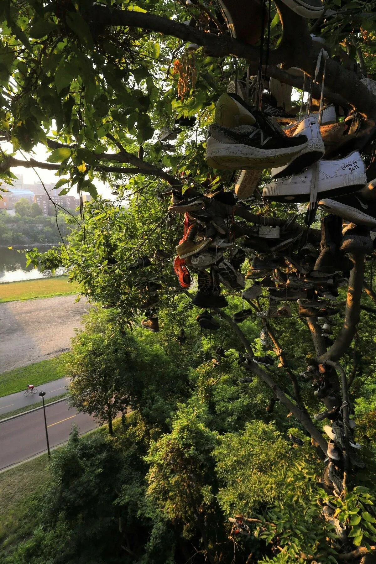 Сотні пар взуття звисають на гілках / Фото Continuum.umn