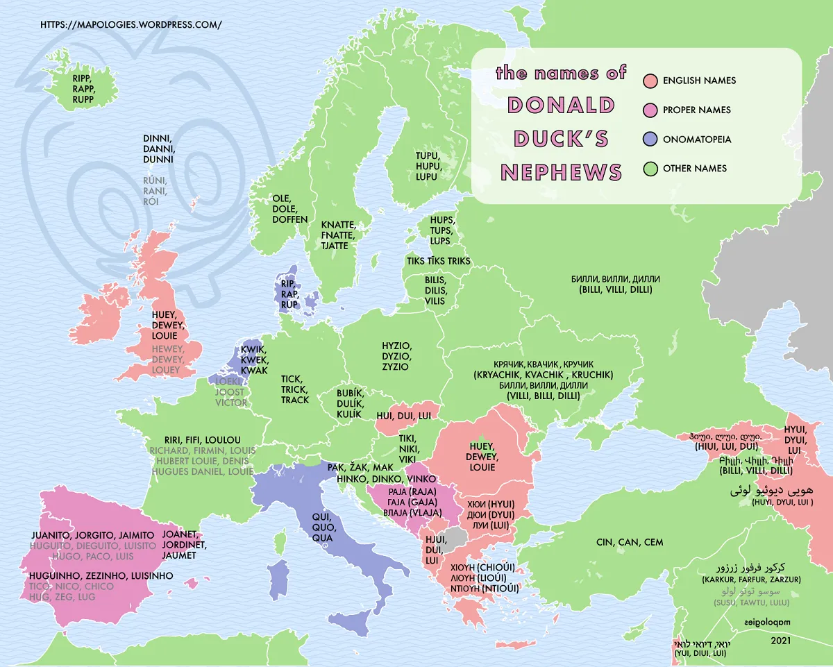 Як називали племінників Скруджа Макдака в різних країнах / Карта Mapologies