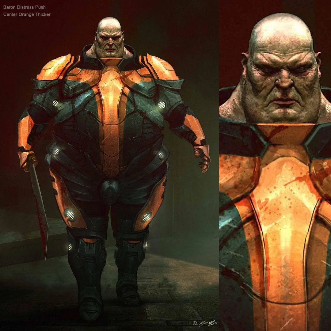 Ось кілька ранніх концепцій костюмів барона, які я зробив для "Дюни", працюючи з дизайнерами костюмів Куртом і Бартом @kurtandbart. Я був дуже радий отримати це завдання. Барон Харконнен – один із найвеличніших науково-фантастичних лиходіїв.