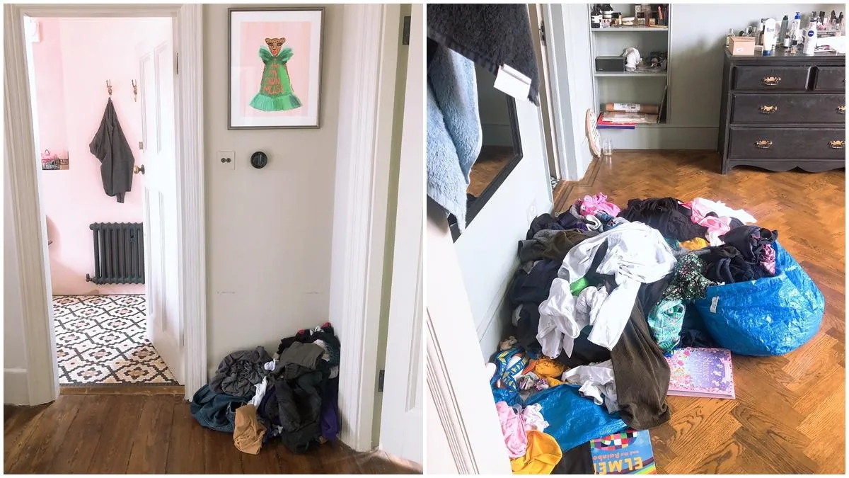 Крім прибирання, жінка вирішила поки що не прати одяг. За кілька днів у її будинку з'явилися цілі купи брудних речей.